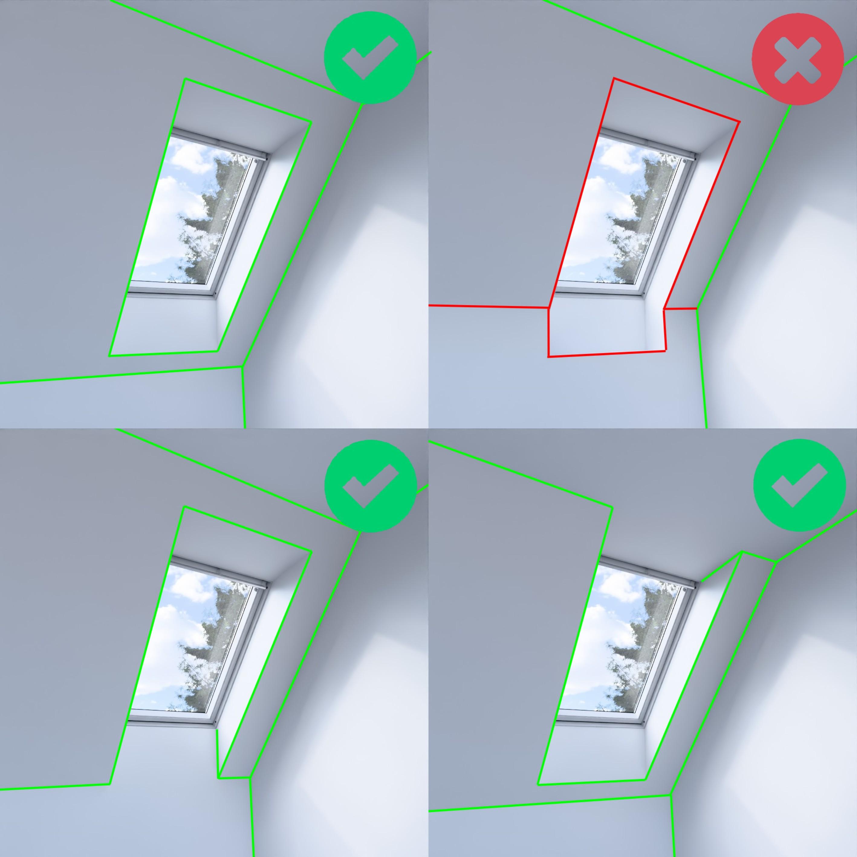 Vor der Bestellung müssen die Breite und Länge der Öffnung um das Dachfenster gemessen werden. Die Öffnung darf im Vergleich zu der gewählten Größe kleiner sein, sie darf jedoch nicht größer als die gewählte Größe sein.
